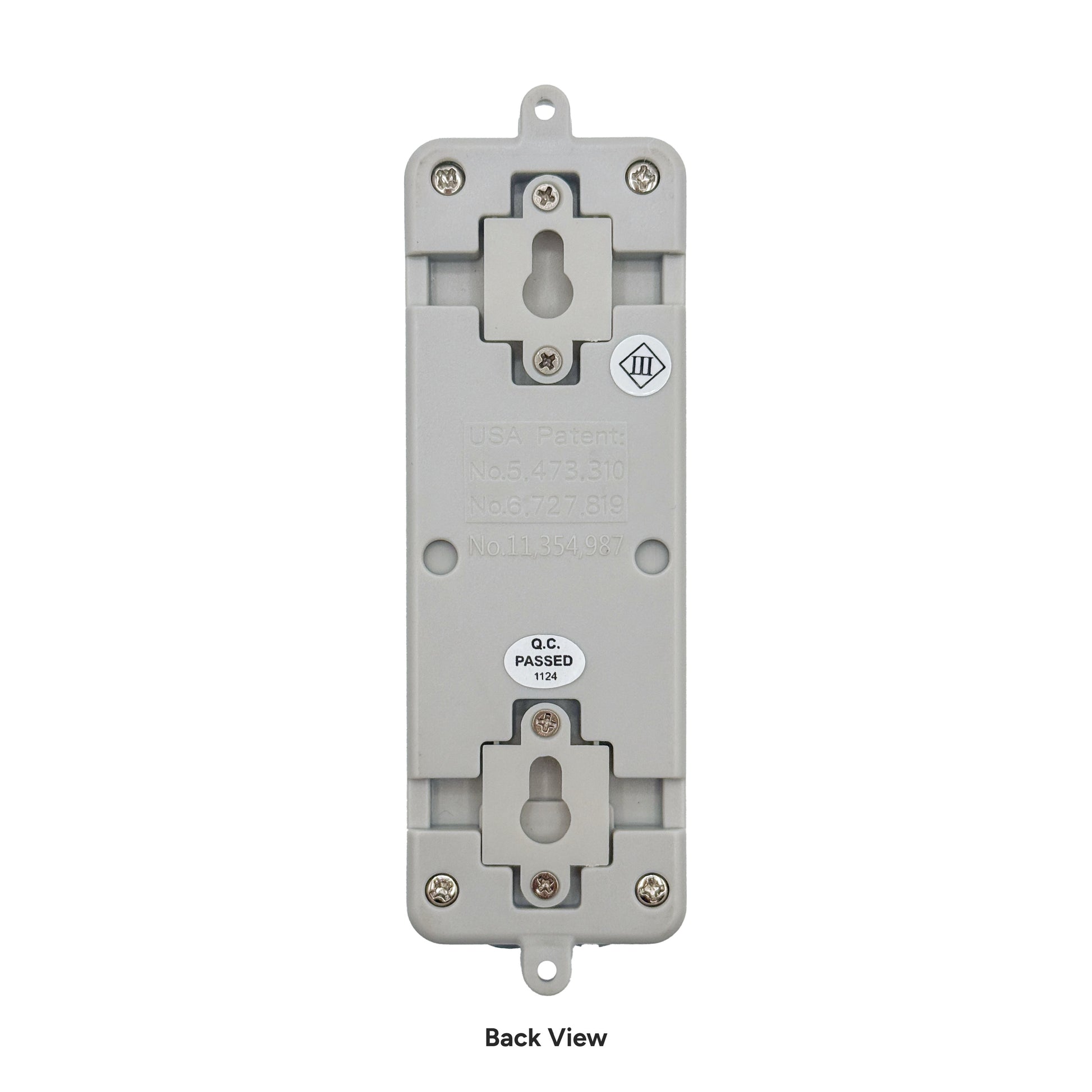 - Easily Enter/Exit: Two bypass buttons temporarily disable alarm for 10 seconds. Indicated by a blinking LED indicator.