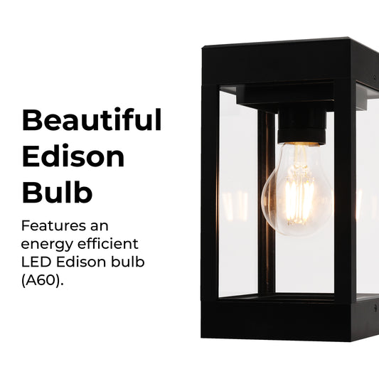Outdoor Solar Wall Light Edison LED Bulb Aluminum Metal Black Sconce, Modern Light Fixture