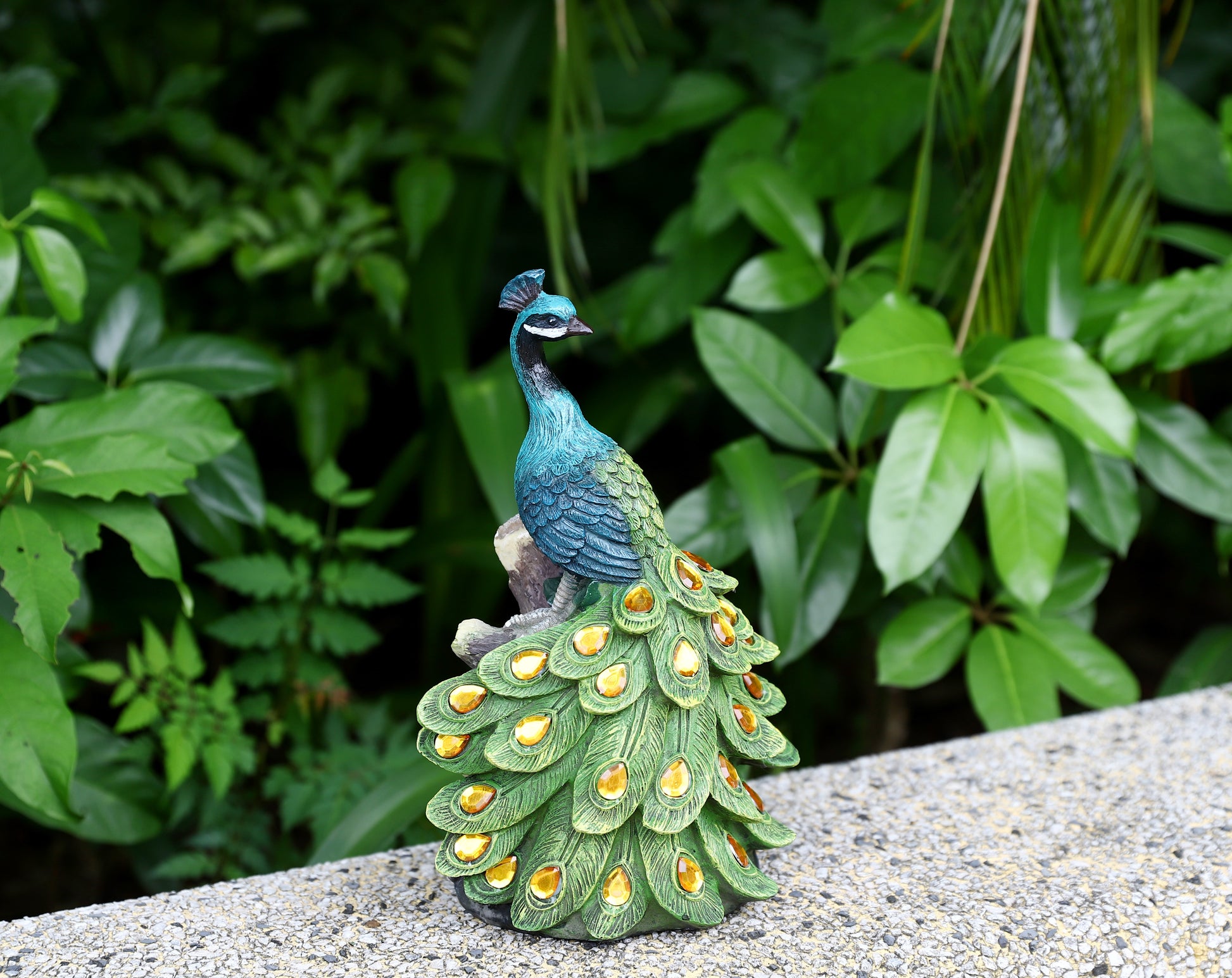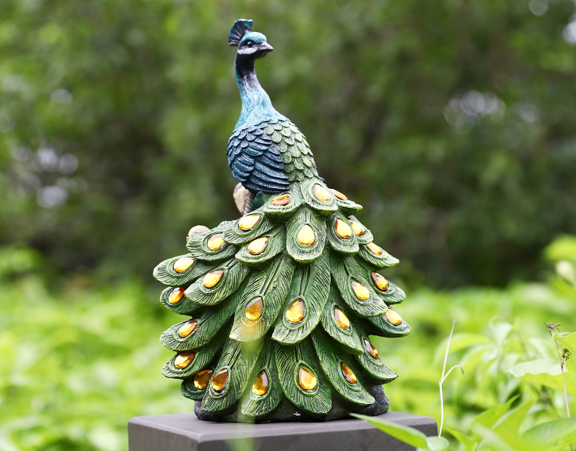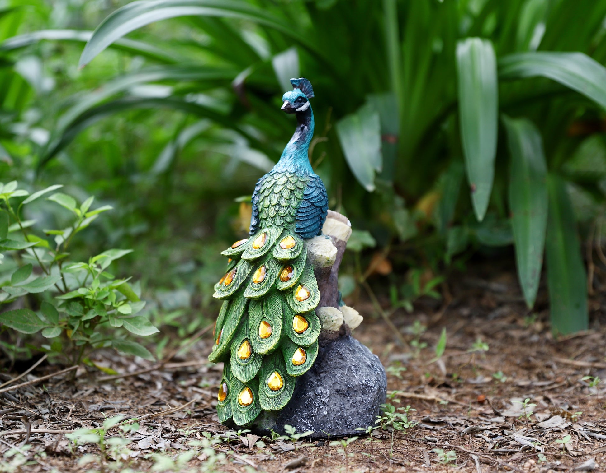 Enhance your garden, yard, or patio with the TECHKO Peacock Statue with Solar Spotlight! This Decorative Statue will bring an enchanting ambiance and beauty to your garden, yard, or patio. Each statue is crafted with resin that is waterproof, long lasting and beautifully hand painted. The external solar spotlight is powered by the sun with the built-in solar panel, it will really light up the statue at night for an eye-catching decoration. The Techko Peacock Statue with Solar Spotlight will make a unique and magical addition to your yard or gift one to a friend or family member so they too can create and enjoy a fun and decorative space.