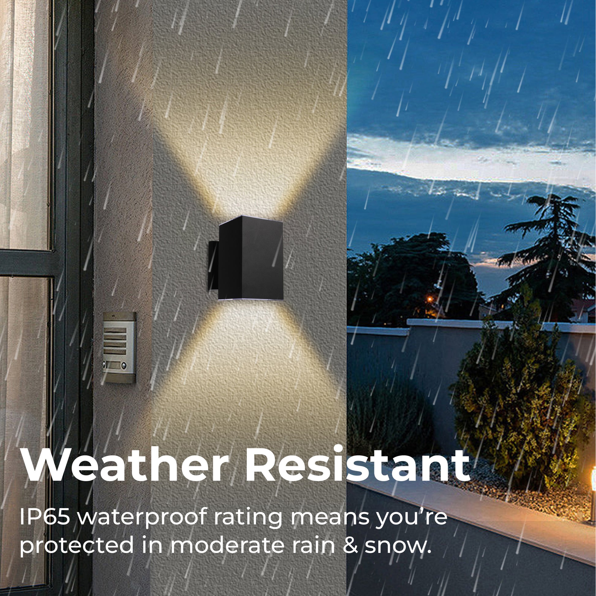 - Weather resistant: IP65 Waterproof rating for moderate rain and snow