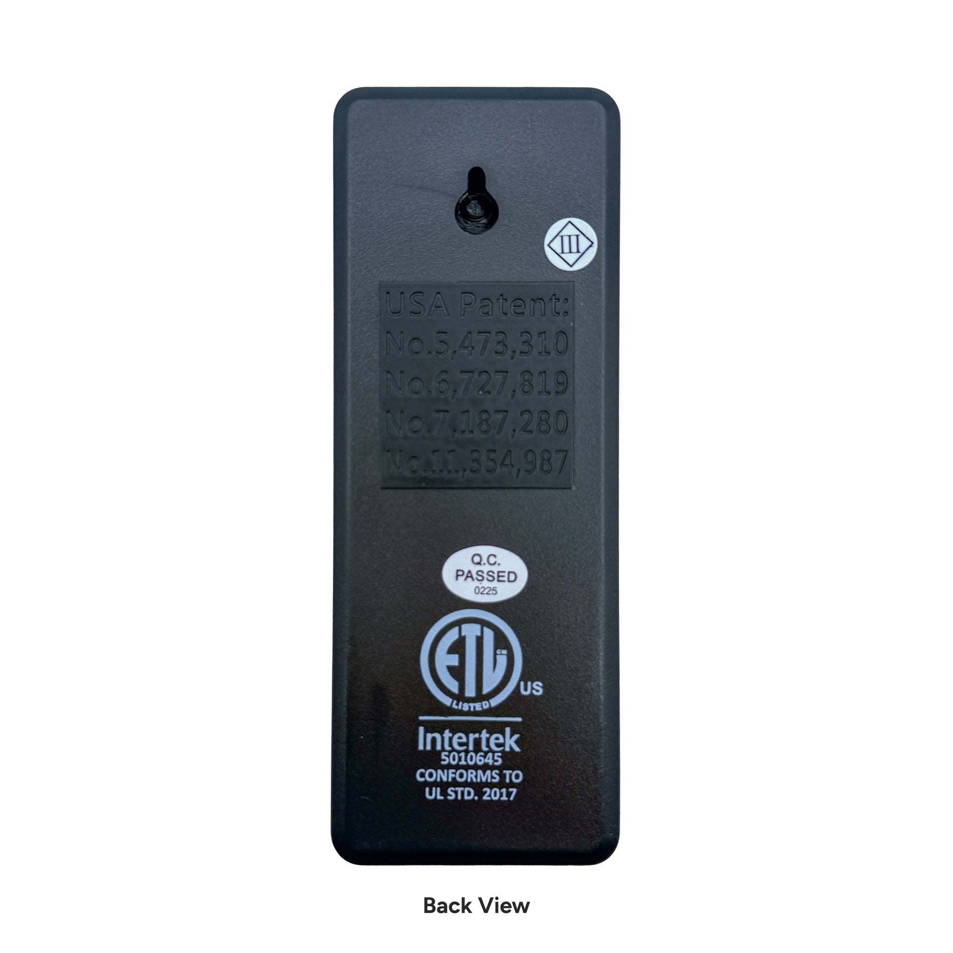 - Low Battery Indicator: Indicated by an always-on red LED, uses three AAA batteries (not included).