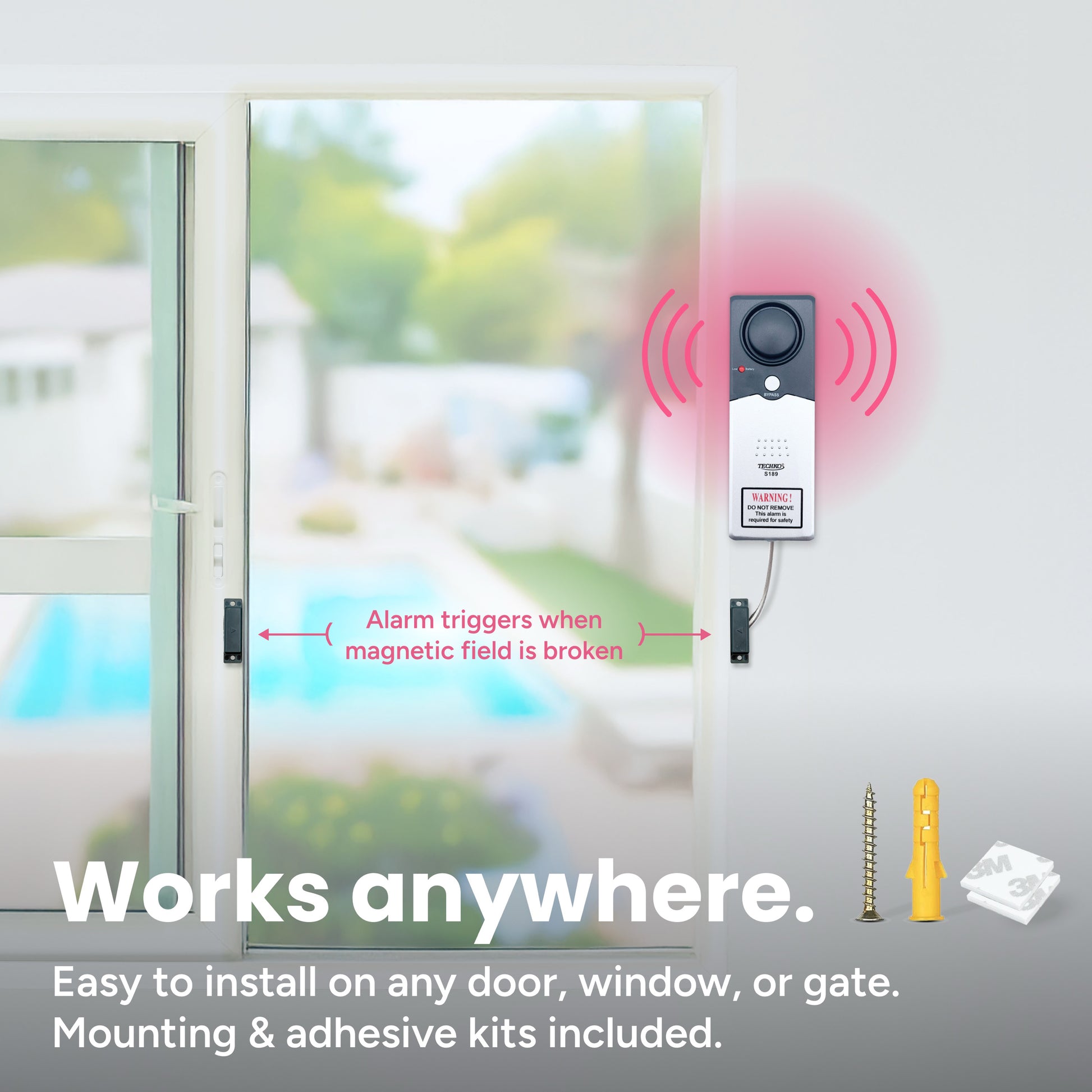 - Patented Screen Door Sensor: Secondary sensor included, keep sliding glass doors open without triggering the alarm when the screen door is drawn. Please note one alarm per door/window, secondary sensor doesn’t work as a separate alarm.