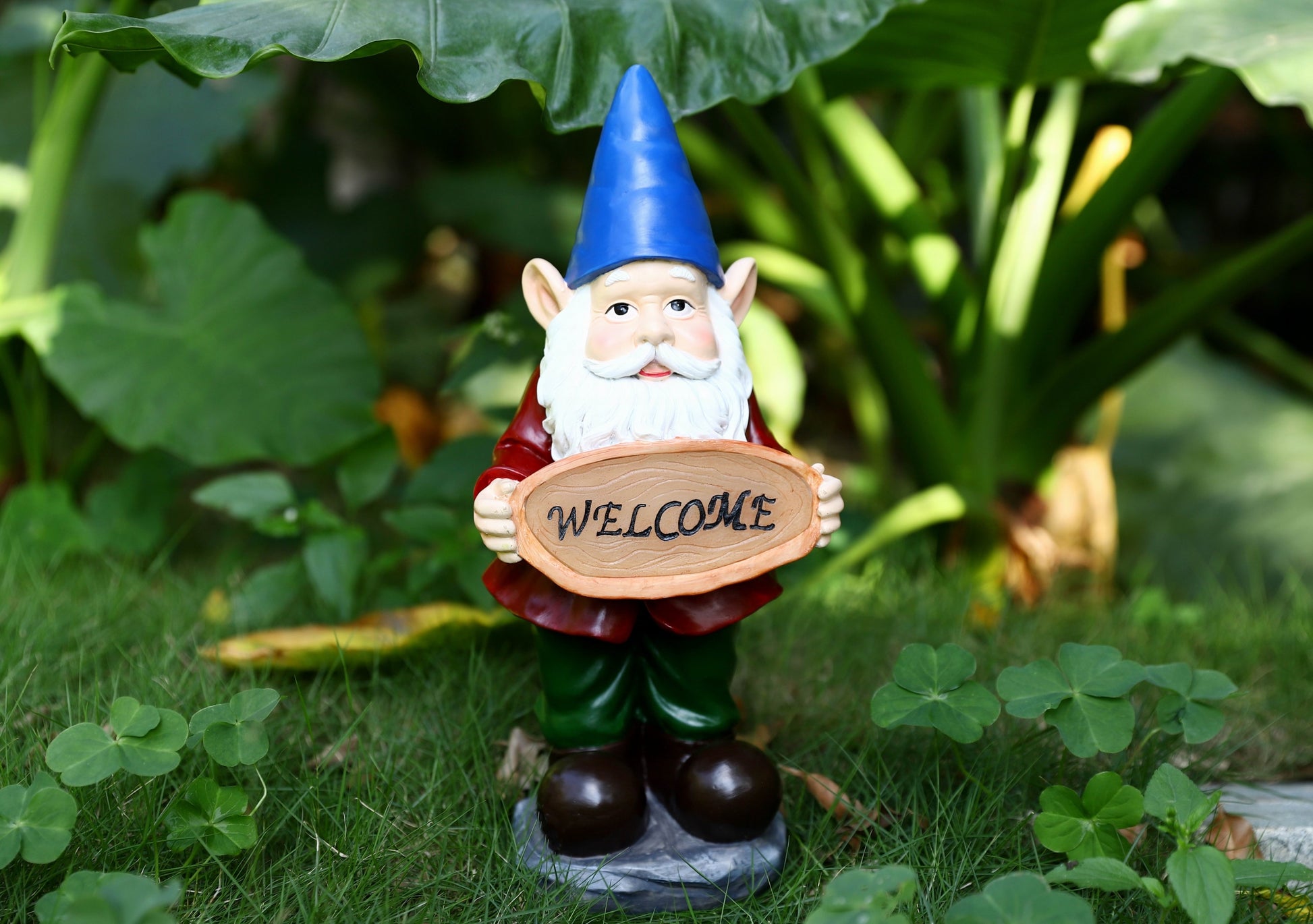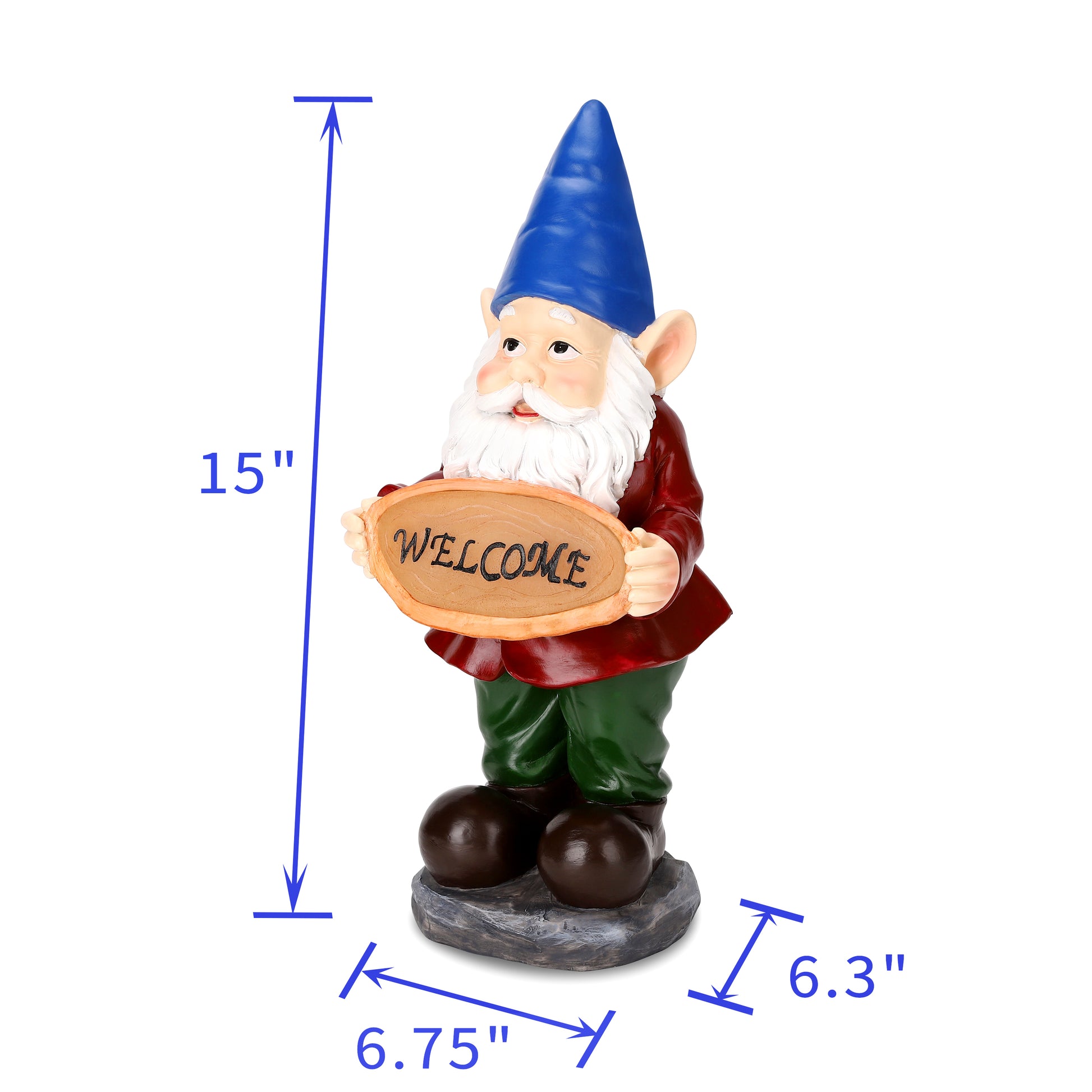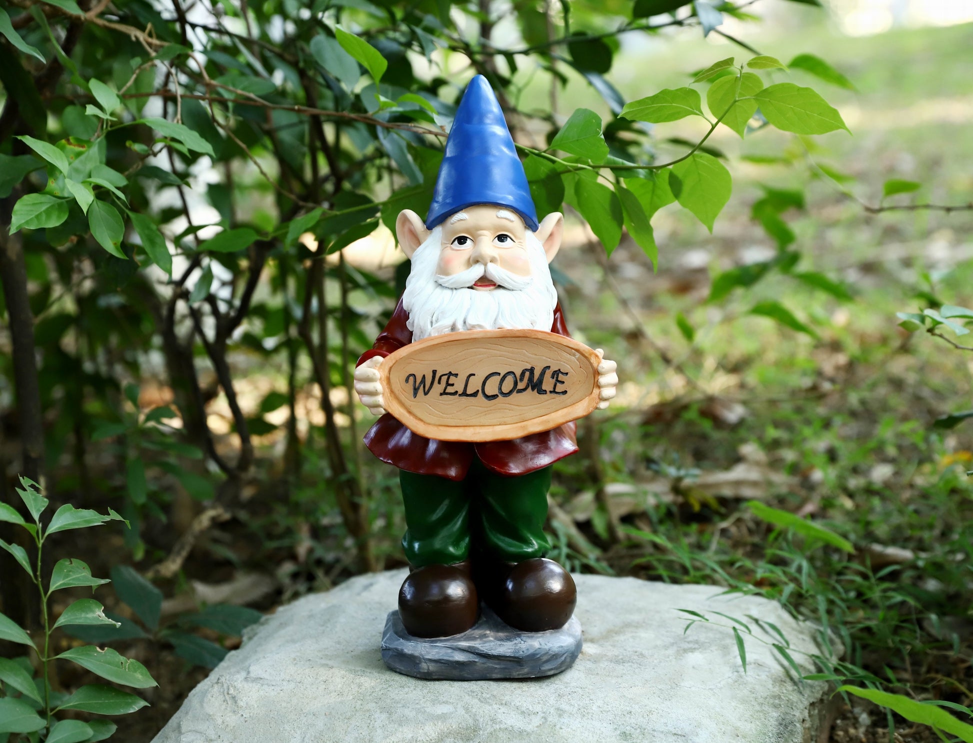 The most perfect little welcome sign welcoming everyone coming in or passing by. The solar light works perfectly. I put the solar panel out and it lights up my gnome all night with the spot light. Lixture attached here. The colors on this little guys is darling.