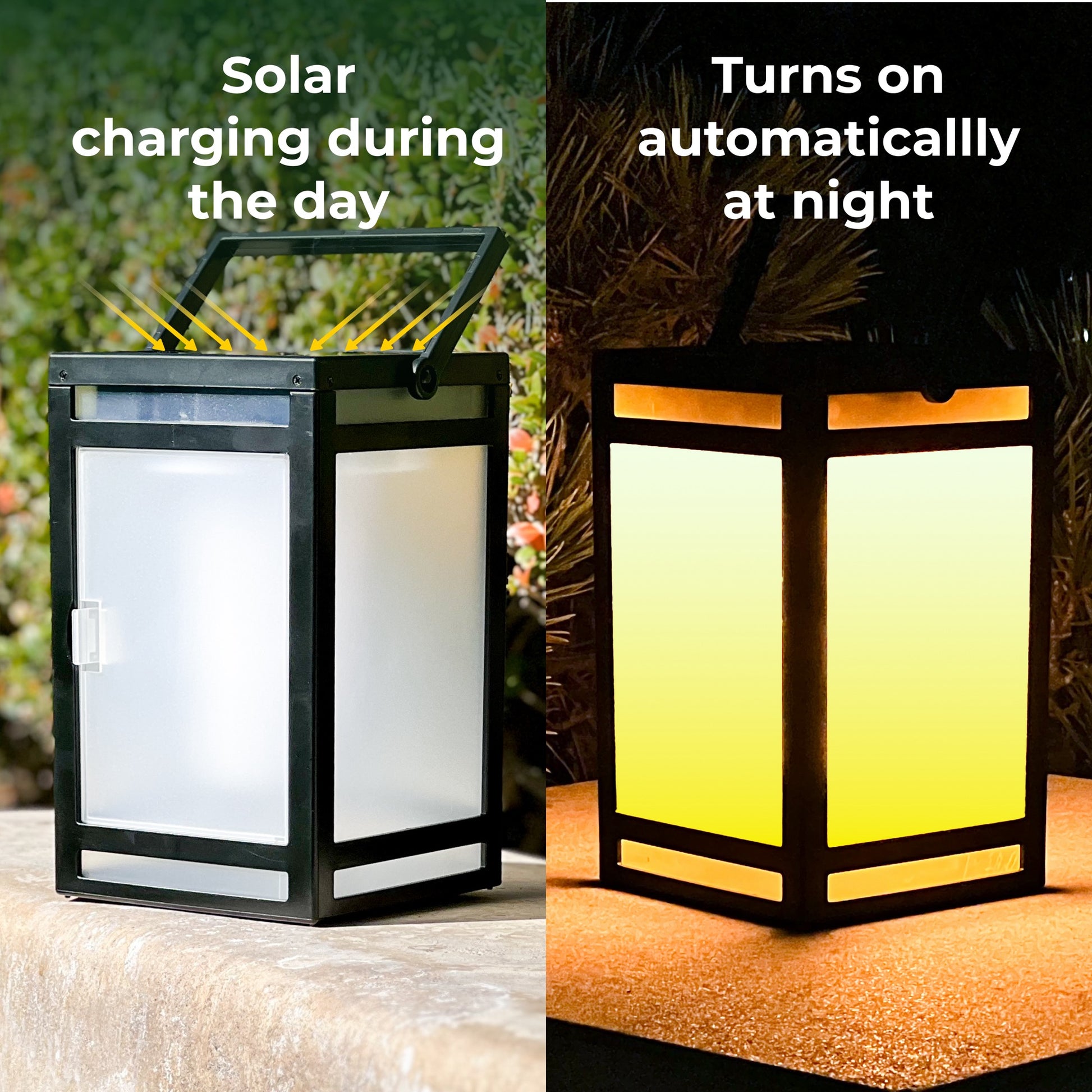 Light up the night with the Techko Solar Lantern. Perfect for any outdoor setting. Select between 2 different lighting options that shine through a clear panel for maximum visibility. Automatically charges during the day to provide up to 12 hours through the evening.