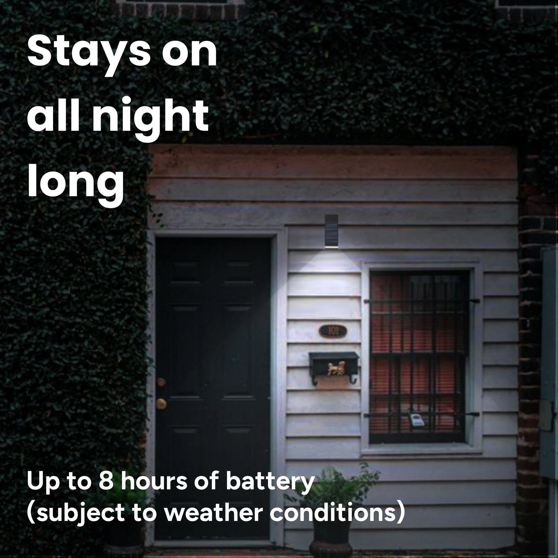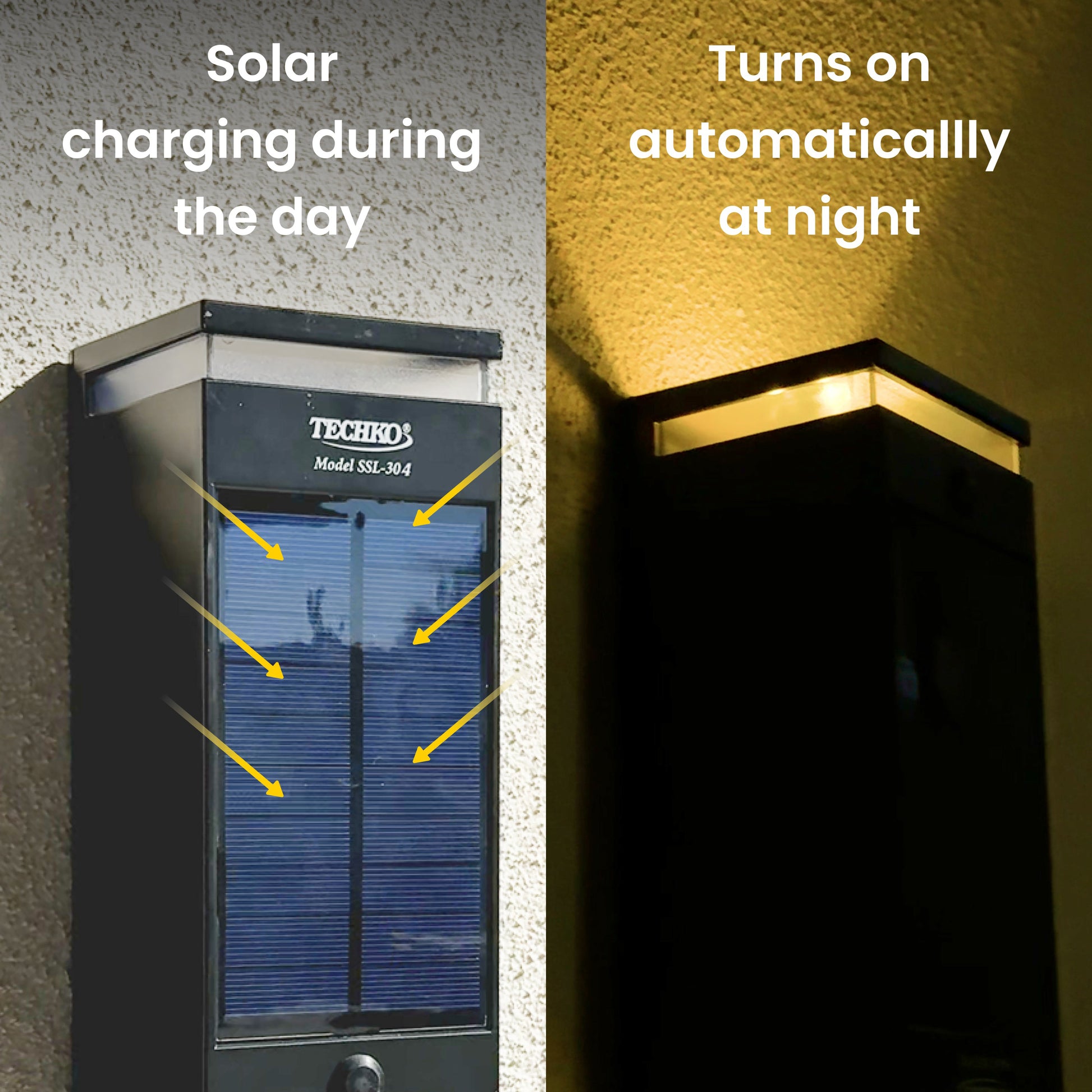 Showcase your home with the Techko Solar Wall Light. This self-sustaining light will automatically turn on at dusk and off at dawn so you'll never have to 'remember' to turn on your lights.