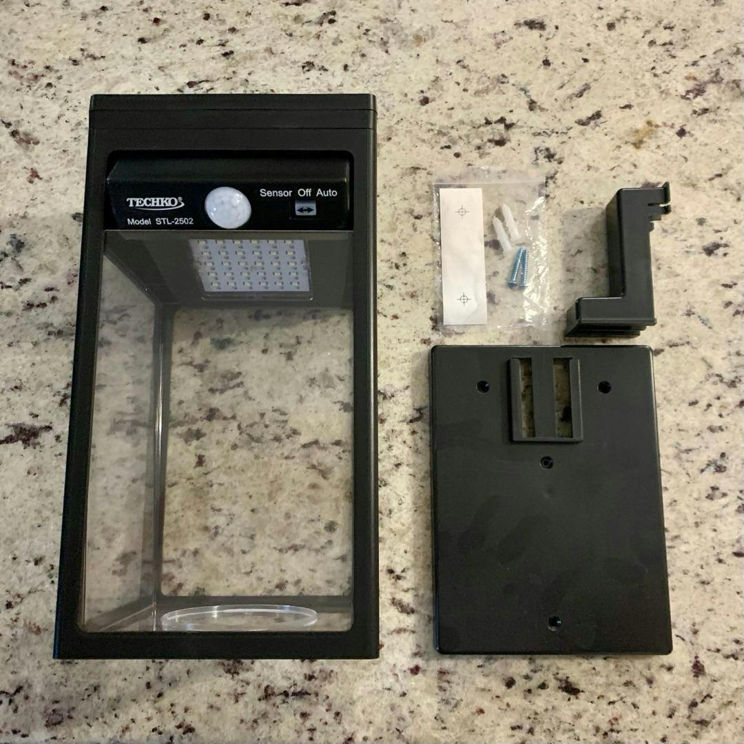 Techko light was easy to install and offers a perfect brightness. It is a lovely addition near our front door. The motion detection works great!