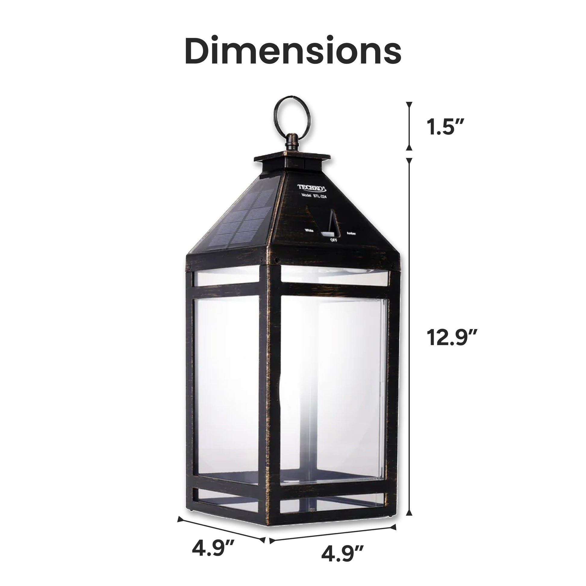 The Solar Portable Hanging Lantern by Techko provides a stylish design and a modern look. This unit comes with the option of two different lighting modes that shine through a clear panel. The first being a warm amber lighting effect; with the second option being a bright white light. This design is weather resistant and suitable for various climate conditions. Its efficient design allows for the light to last up to 12+ hours on a full charge. They are perfect to enhance your garden areas, line your sidewalks, driveways or bring them inside after they have fully charged. Automatically turns on at dusk and off at dawn. Comes with a dust and water resistance IP65 rating allowing the unit to remain functional outside in most climates. Contains one solar portable hanging lantern.