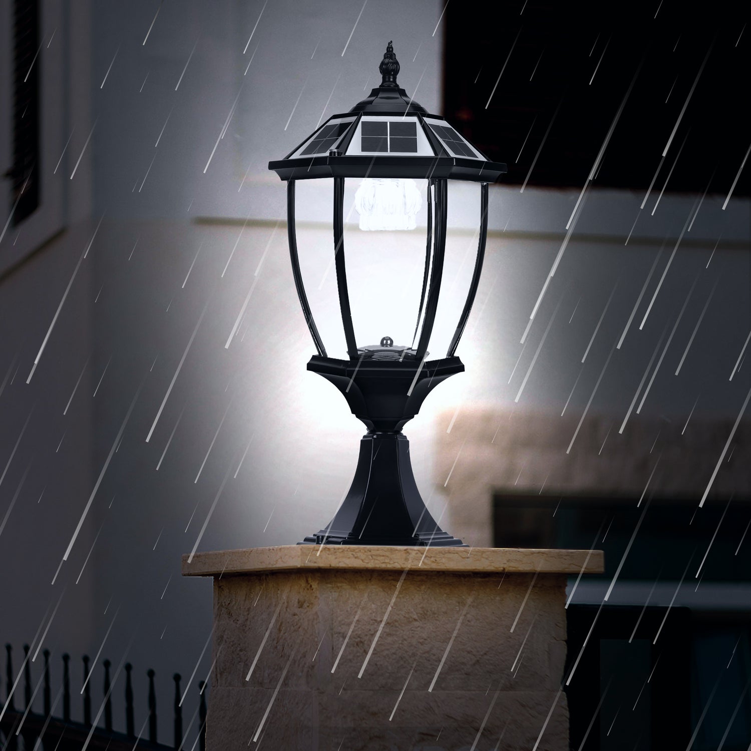 Elevate your gates, fences, yard or lawn with the Techko vintage style post lights. These solar-powered lights provide a classic design for and makes it perfect for mounting in your outdoor landscape. The unit includes a wireless remote to select 4 options for lighting and 4 options for timers. Once it’s fully charged it will automatically turn on at dusk and off at dawn, it’s self-sustainable to last up to 12 hours on a full charge. Comes with a dust and water resistance IP65 rating allowing the unit to remain functional outside in most climates. Contains one solar Vintage Pillar Light.